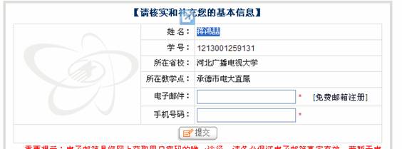 弹出如下对话框,填完电子邮箱和手机号码后, 点“提交”