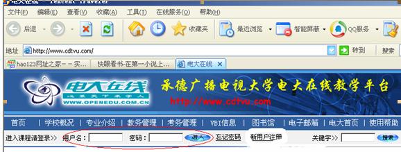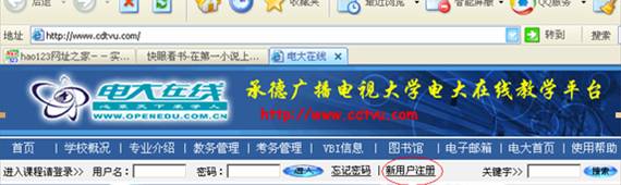 1.在IE地址栏输入网址www.cdtvu.com,回车。弹出下图,点击新用户注册。