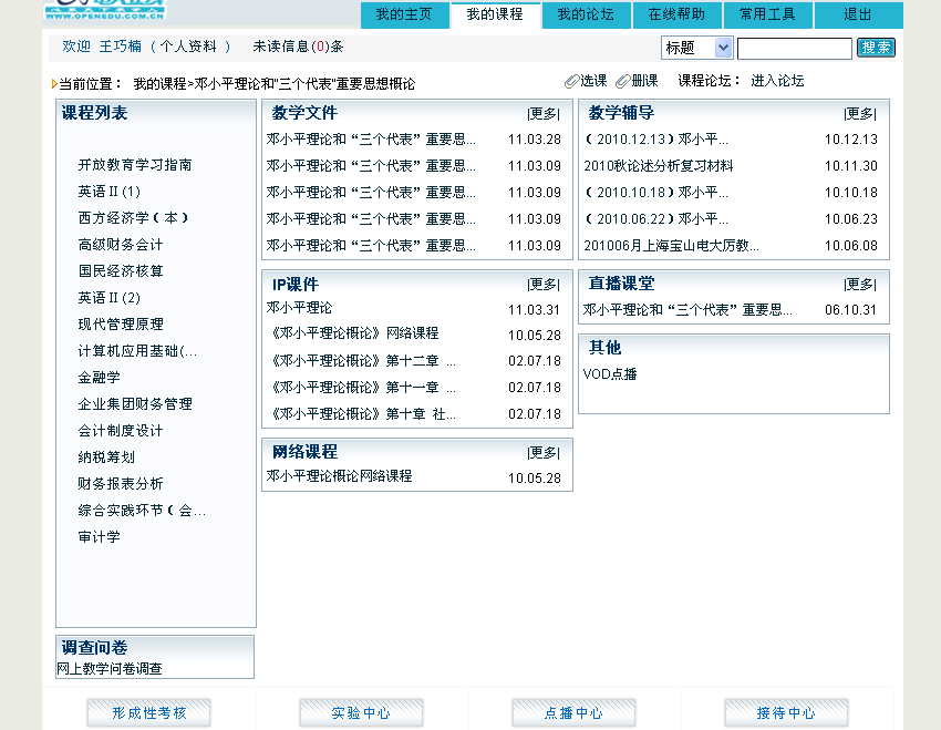 2、或者登录中央电大在线教学平台,用学号登录,进入到个性化学习界面,在左下角有个“形成性考核”按钮,可以从这里进入形考平台。