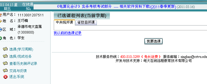 每学期,上级电大都会安排一些课程参加网络考试,这里有些课程需要到网上完成形成性考核,中央电大的课程形成性考核成绩及格(≥60分)
