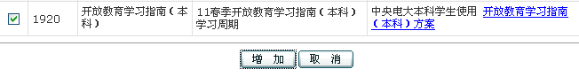 4、在弹出的课程列表里面选择自己要参加网络考试的课程(点“增加)”, 这里注意中央统开课和省校自开课之分。