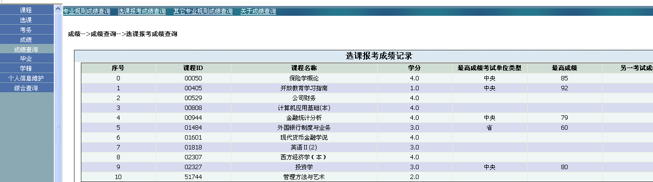 注意:诸如课程、选课、报考等其它栏目请勿乱动,否则可能会影响数据的准确性。