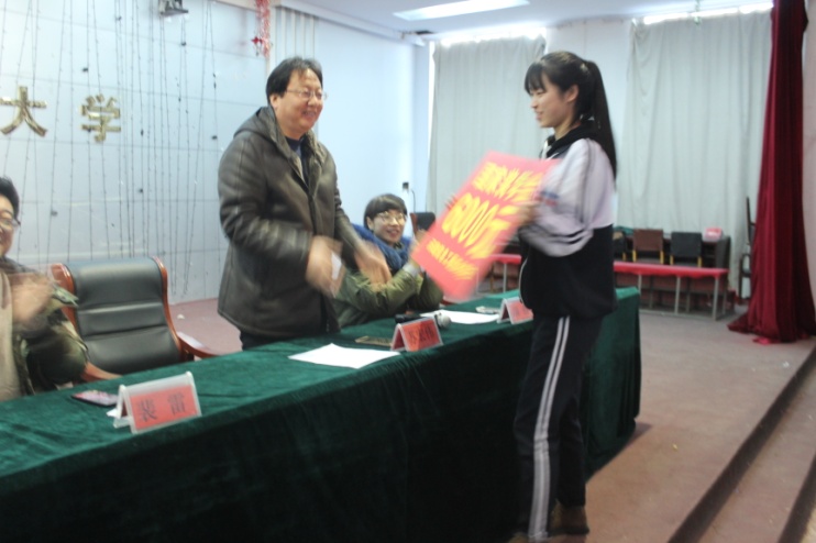 学校副校长苏宏伟同志为张雪莹同学颁奖,台下师生掌声雷动,表达了对张雪莹同学的诚挚祝贺。