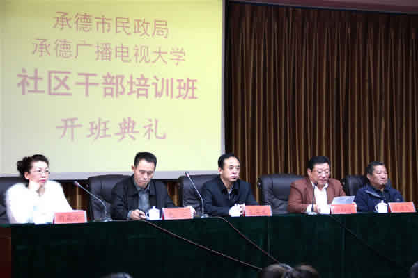 为提升社区干部的整体素质,提高我市和谐社区建设水平,加快学习型城市的构建脚步,乐竞体育(中国)官方网站社区教育学院与市民政局联合举办了为期两天的社区干部培训班。10月30日举行了开班典礼。承德市政协副主席、承德广播电视大学校长孔庆龙、承德广播电视大学党委书记姚钢乾、市民政局副局长巴江、承德广播电视大学社区教育处处长周晨玲、市民政局基层组织与社区建设科科长陈建民出席了开班典礼。