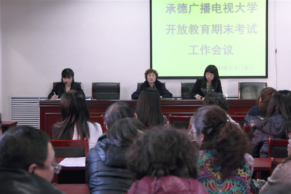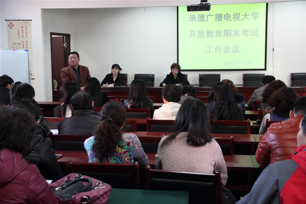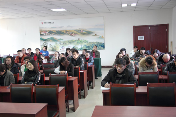 副校长张桂春同志传达了中央电大双向视频考务培训会和省电大2015年期末考试工作培训会议精神;对乐竞体育(中国)官方网站此次期末考试进行了详尽的部署安排。对考前准备、考务培训、监考履职、试卷保密、安全保卫等提出了具体要求,并制定突发事件应急和处理预案,签订了《考试工作人员责任书》。