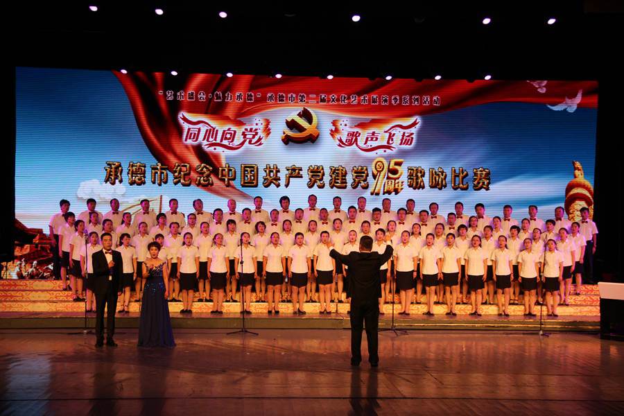 为庆祝中国共产党建党95周年,大力弘扬爱国主义精神,培育和践行社会主义核心价值观,用歌声传唱党的奋斗历程和光辉伟绩,诠释“生态强市 魅力承德”建设过程中的新变化、新风貌,展示全市人民团结奋进,追梦逐梦的时代精神,激发人们干事创业豪情,唱响中国梦,弘扬主旋律,传播正能量。6月30日上午,“同心向党 歌声飞扬”纪念中国共产党建党95周年歌咏比赛在承德大剧院举行。