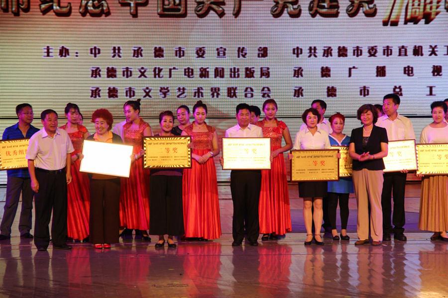 本次合唱比赛由学校党委书记姚钢乾带队,张桂春副校长及学校80名教职工参加此次比赛,大家积极准备,认真投入,不辞辛苦、不畏风雨利用休息时间进行排练,在比赛中大家团结一致,热情投入、激情高昂,以良好饱满的精神状态,演唱了《中国梦》和《红旗颂》两首合唱曲目,唱出了对党的无限忠诚和对祖国的无限热爱,讴歌伟大中国梦,表现出了高度的团结精神和集体荣誉感,以积极向上的精神风貌完美的展示了电大人的风采。最终,在11支代表队中脱颖而出,取得了二等奖的好成绩。承德市政协副主席、承德广播电视大学校长孔庆龙等市领导为获奖单位颁奖,学校副校长苏卫兵、张桂春代表学校领取奖状。