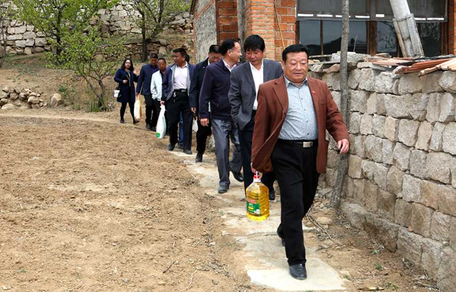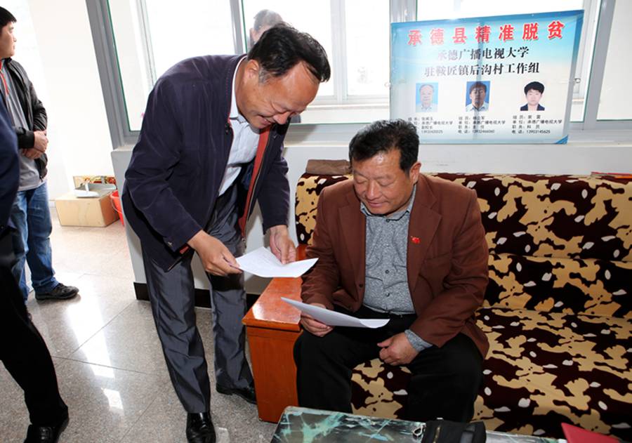 为落实市委、县委对扶贫工作“三个精准”要求,2017年4月25日至28日,承德电大党委书记姚钢乾带领调研组到扶贫点安匠镇后沟村考察调研精准脱贫驻村帮扶工作。承德电大党委副书记、驻村工作组组长张阁玉、安匠镇委书记王小风、安匠镇组织部长周颜华、后沟村书记常兴来、村副书记蔡立军及驻村工作组成员陪同调研。