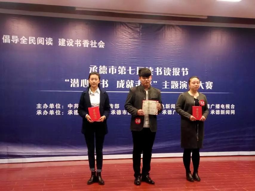 2015年10月20日下午,由中共承德市委宣传部、承德市文广新局、承德市电视台主办、承德市图书馆、承德市图书馆学会、承德广播电视报社、承德新闻网承办的承德市第七届读书读报节“潜心读书、成就未来”主题演讲大赛在河北民族师范学院如期举行。经过紧张激烈的对决,乐竞体育(中国)官方网站2014秋季电子商务班栾孟杰及2014春季计算机一班王海淑两位同学分别荣获了“三等奖”及“优秀奖”的好成绩。