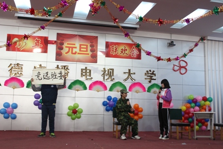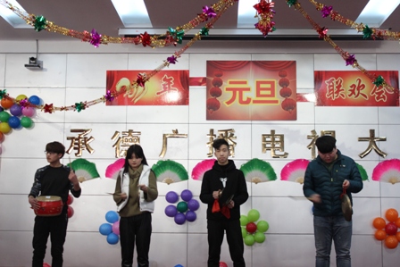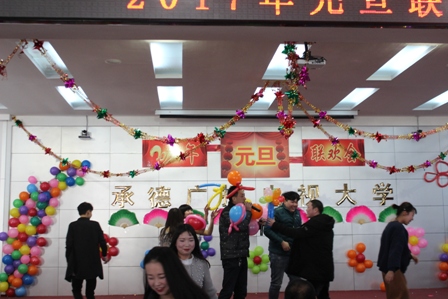 2016年12月29日上午, 乐竞体育(中国)官方网站2017年元旦联欢会在教学楼六楼大会议室隆重举行. 晚会在学生会张晓宇同学精彩、激情的架子鼓表演中拉开序幕,独唱、小品、三句半、相声、街舞……一个个精彩的节目博得了阵阵掌声,中专部陈书记的一首《吻别》更是将晚会推向了高潮。整台联欢会欢快、热烈、轻松、活跃、祥和、喜庆,全面展示了乐竞体育(中国)官方网站学生积极向上、团结合作的精神面貌,达到了增强集体凝聚力、创建和谐校园的良好效果。